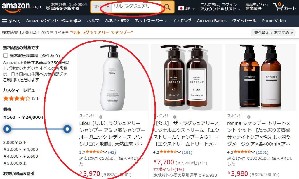 一方、リル ラグジュアリーシャンプー公式サイトの定期コースなら3,573円+送料無料で、さらにポイント還元もあります。