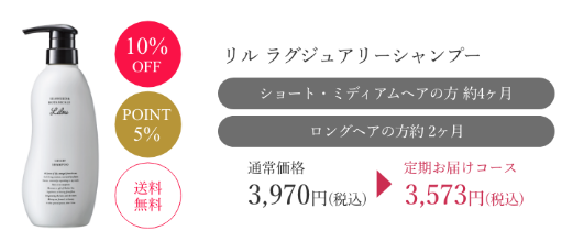 リル ラグジュアリーシャンプー公式サイトの定期コースを利用すると通常価格3,970円が3,573円になり、さらに送料550円も無料になります。